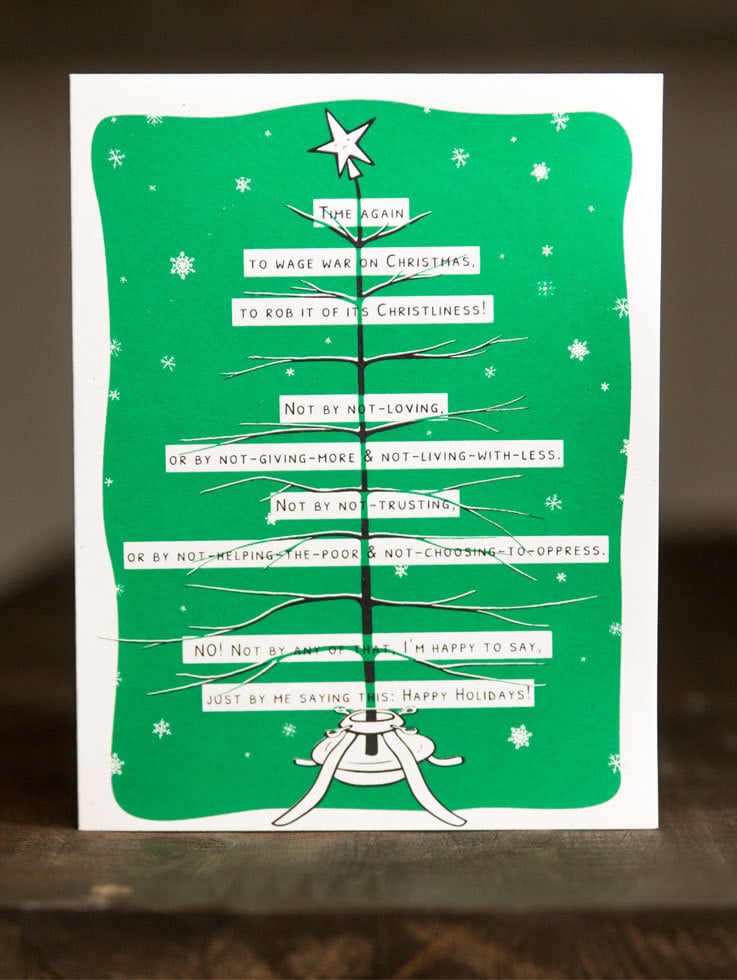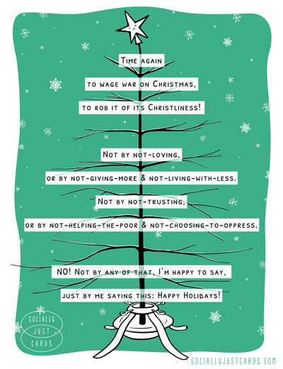 The war on Christmas began when it became yet another tool for hate, something Newspeople[3] and Drunk Uncles use to wedge us apart (the bad kind of wedge, not the cheese kind of wedge).